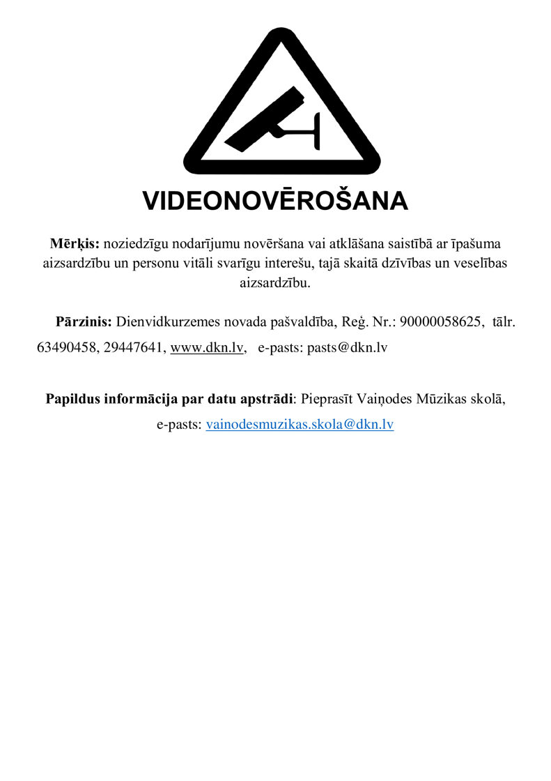 AR 2025. GADA 24. OKTOBRI VAIŅODES MŪZIKAS SKOLAS ĀRA TERITORIJĀ NOTIEK VIDEO NOVĒROŠANA